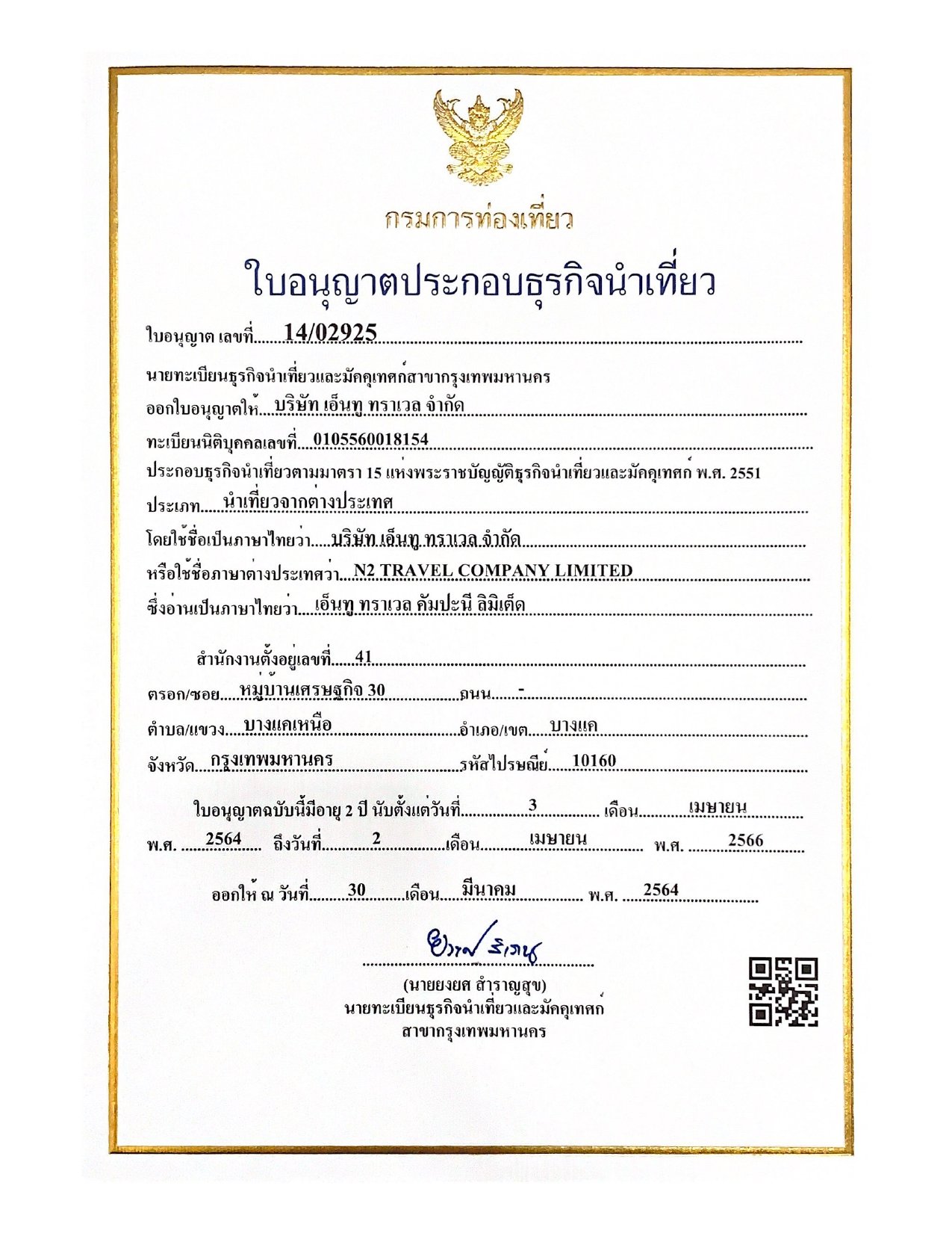 We have licensed by the Tourism Authority of Thailand number 14/02925.